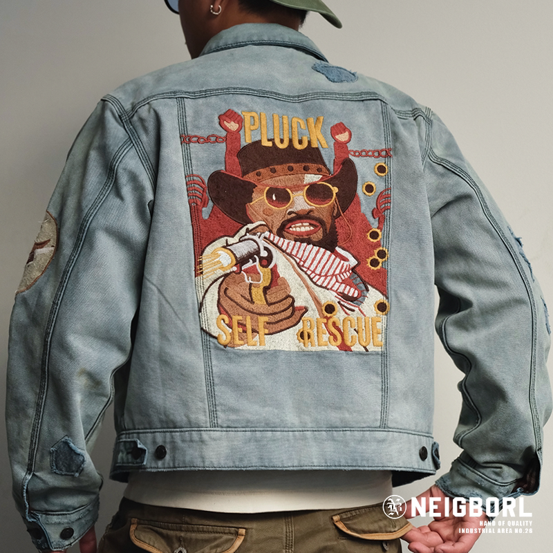 【Rescue Django】NEIGBORL Uncle Zhao made a retro wash heavy embroidered patch denim jacket jacket