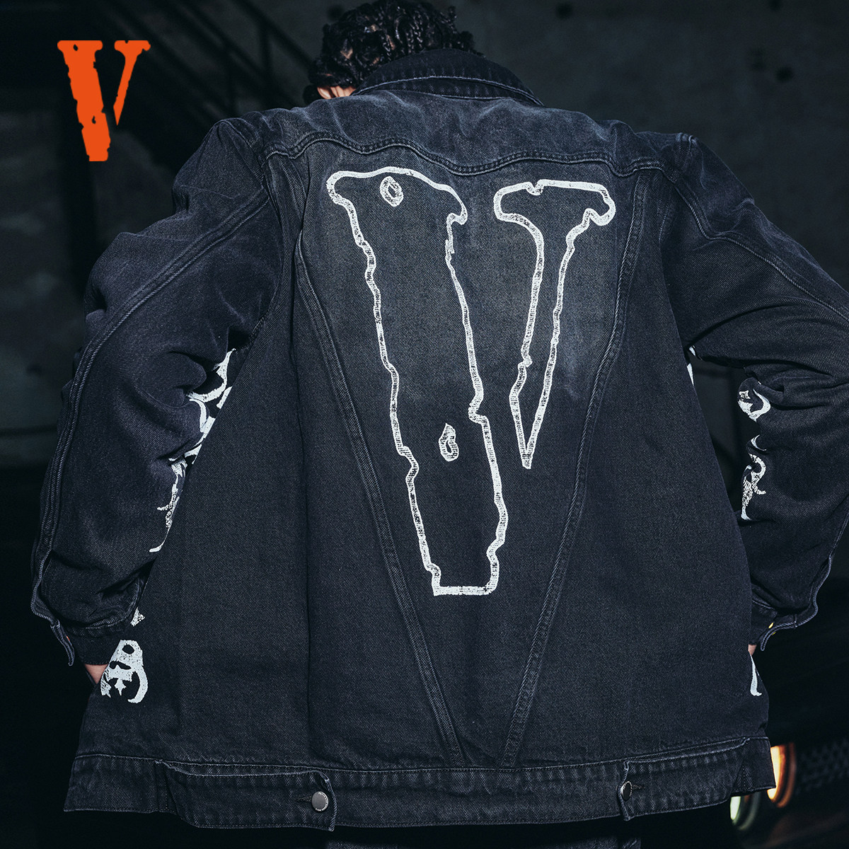 VLONE 25 new gothic style slogan large logo print three-dimensional cut made old washed casual denim jacket