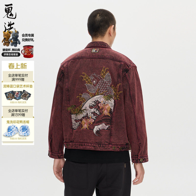 ONIARAI/ ghost wash 25 autumn and winter thief blue five colors embroidered denim men's casual jacket N340234