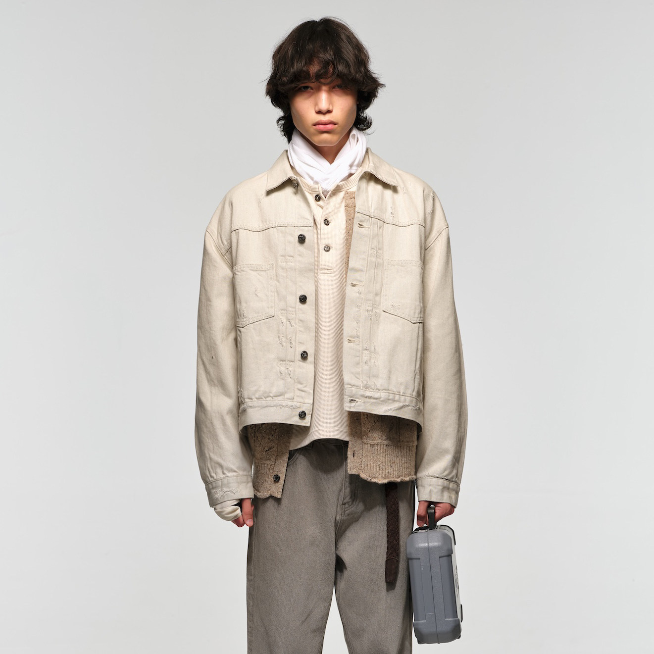 UNKNOWNWORLD 25FW Devil's Season Wreck Hurricane Wash Fitted Fitted Denim Jacket
