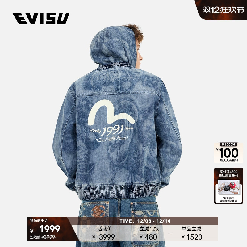 EVISU Fall 2025 Men's Seagull Print Casual Fashion Short Denim Jacket