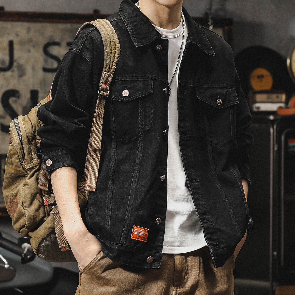 American retro high-end denim jacket, men's spring ins trendy brand, high street ruffian, handsome workwear, niche lapel jacket