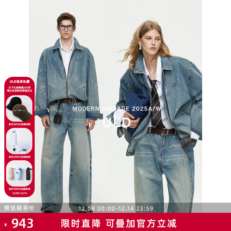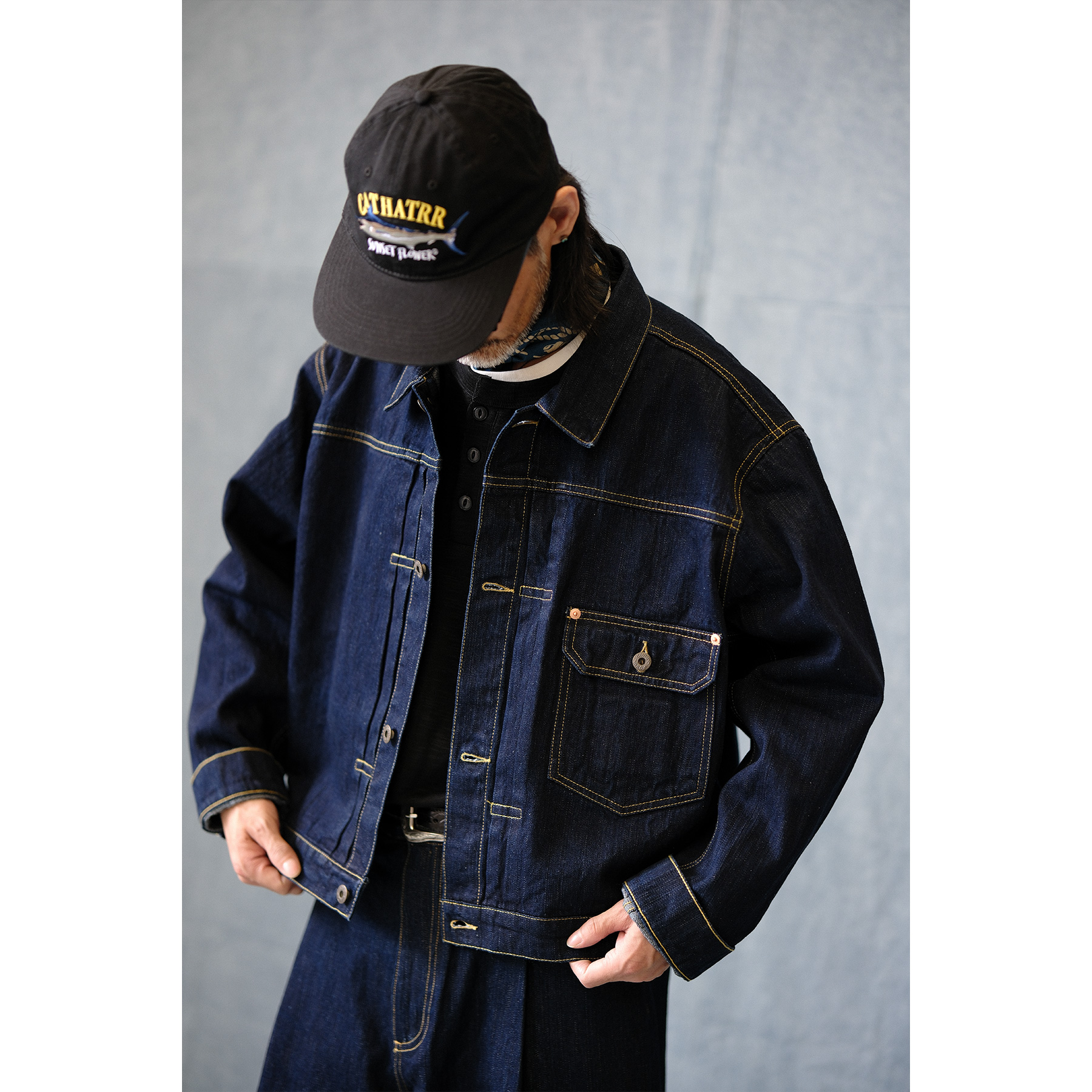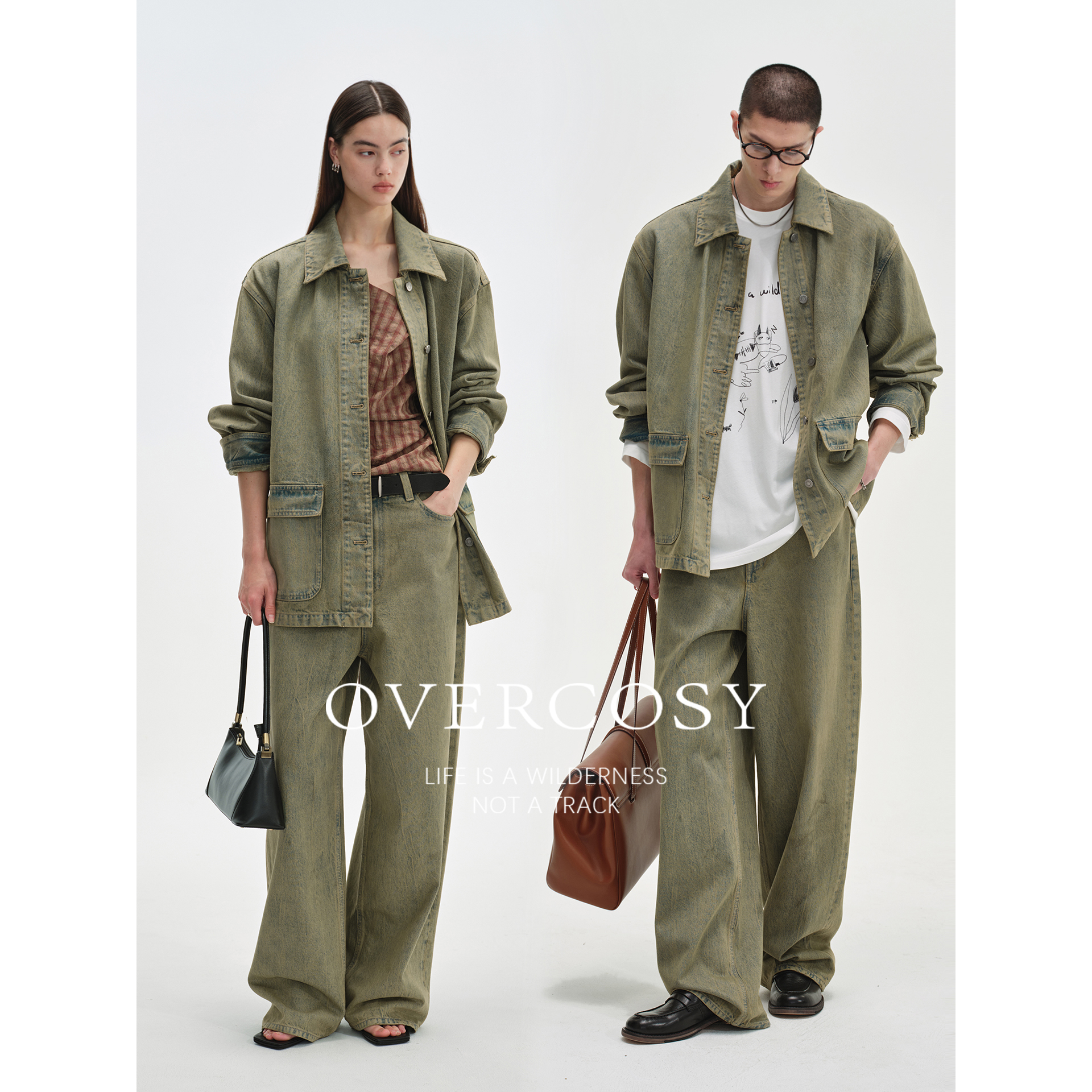OVERCOSY ultra-comfortable/cotton denim fabric loose silhouette lapel vintage distressed denim jacket