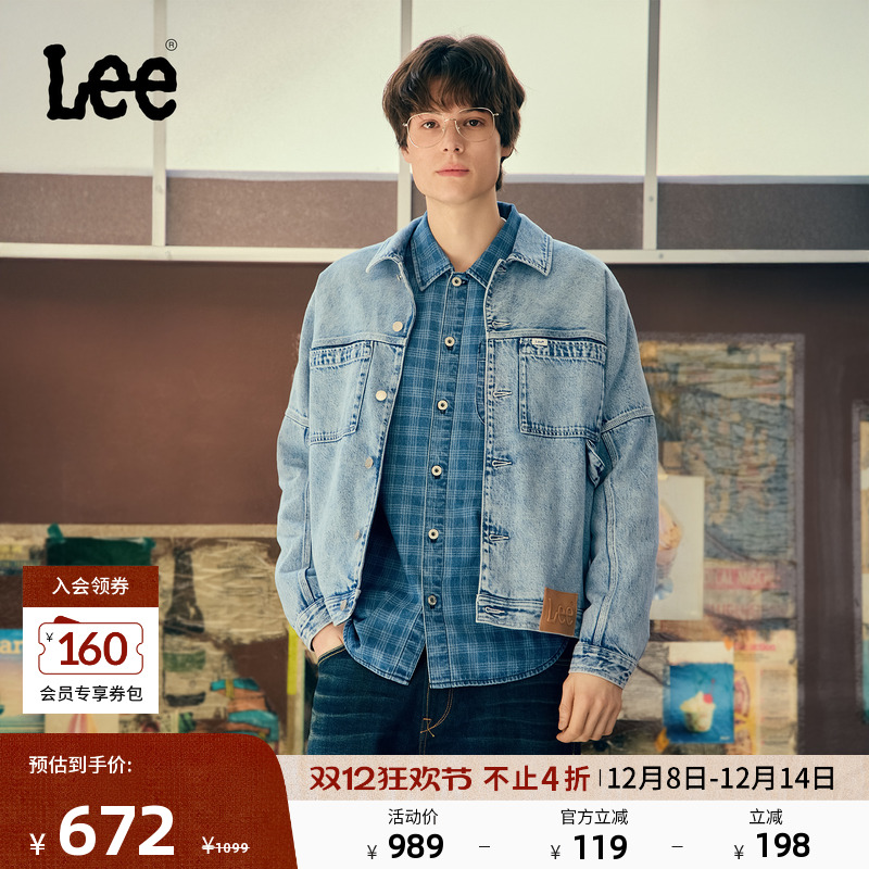 Lee shopping mall same 25 autumn and winter new comfortable version of lapel workwear style light blue men's denim jacket trend