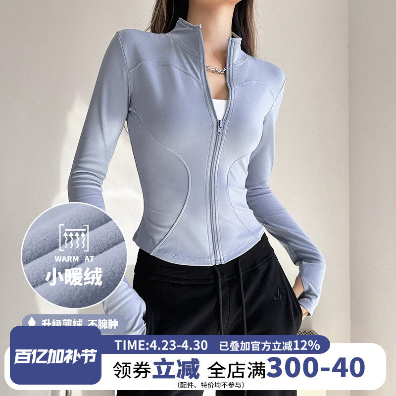 Fitness girl stand-up collar yoga suit jacket running Pilates training slimming plush sports top 2026 new