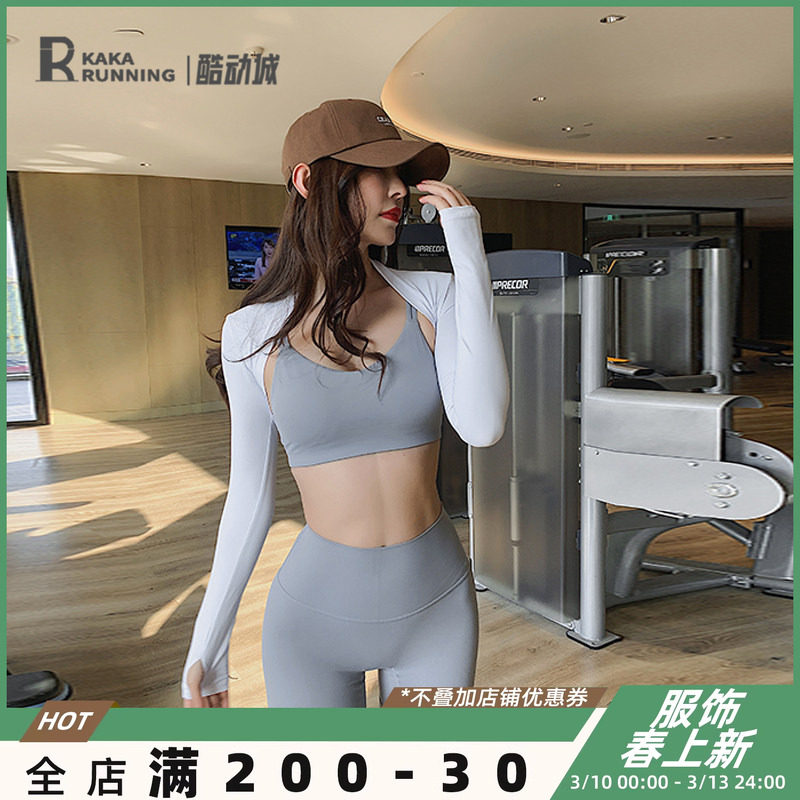 Run, kaka sports shoulder cover-up, women's slim yoga clothes, wear sunscreen, quick-drying running fitness clothes, and tops