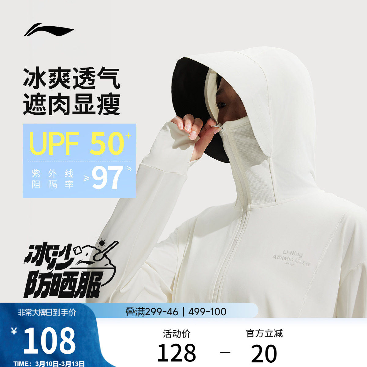 Li Ning smoothie sun protection clothing丨Summer new original yarn ice silk top women's light and breathable outdoor hooded jacket