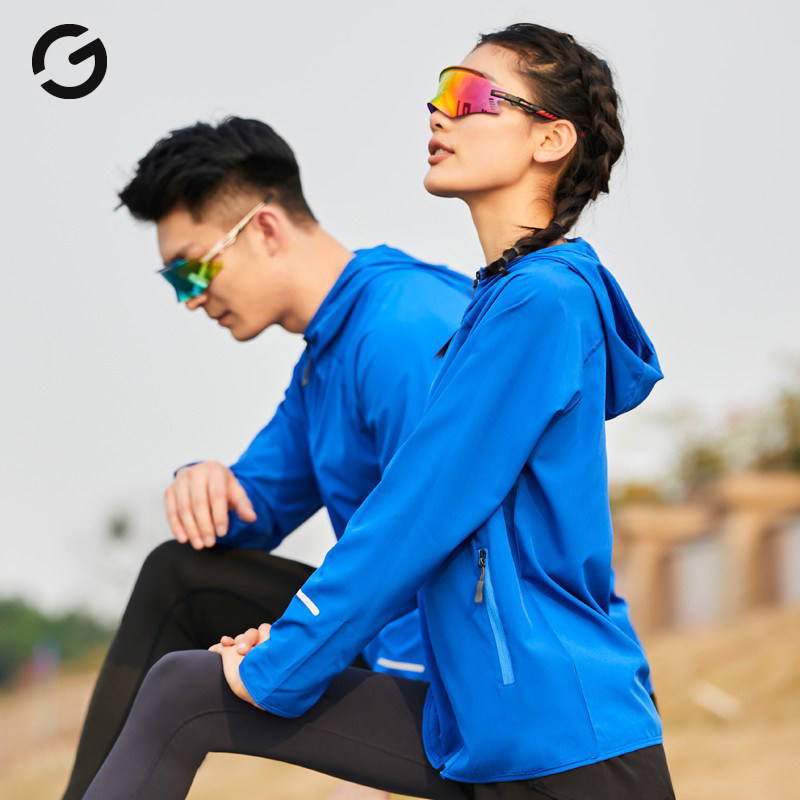 Running jackets, men's and women's outdoor cycling, sports windproof jackets, quick-drying clothes, hooded long sleeves, cardigans, morning running clothes