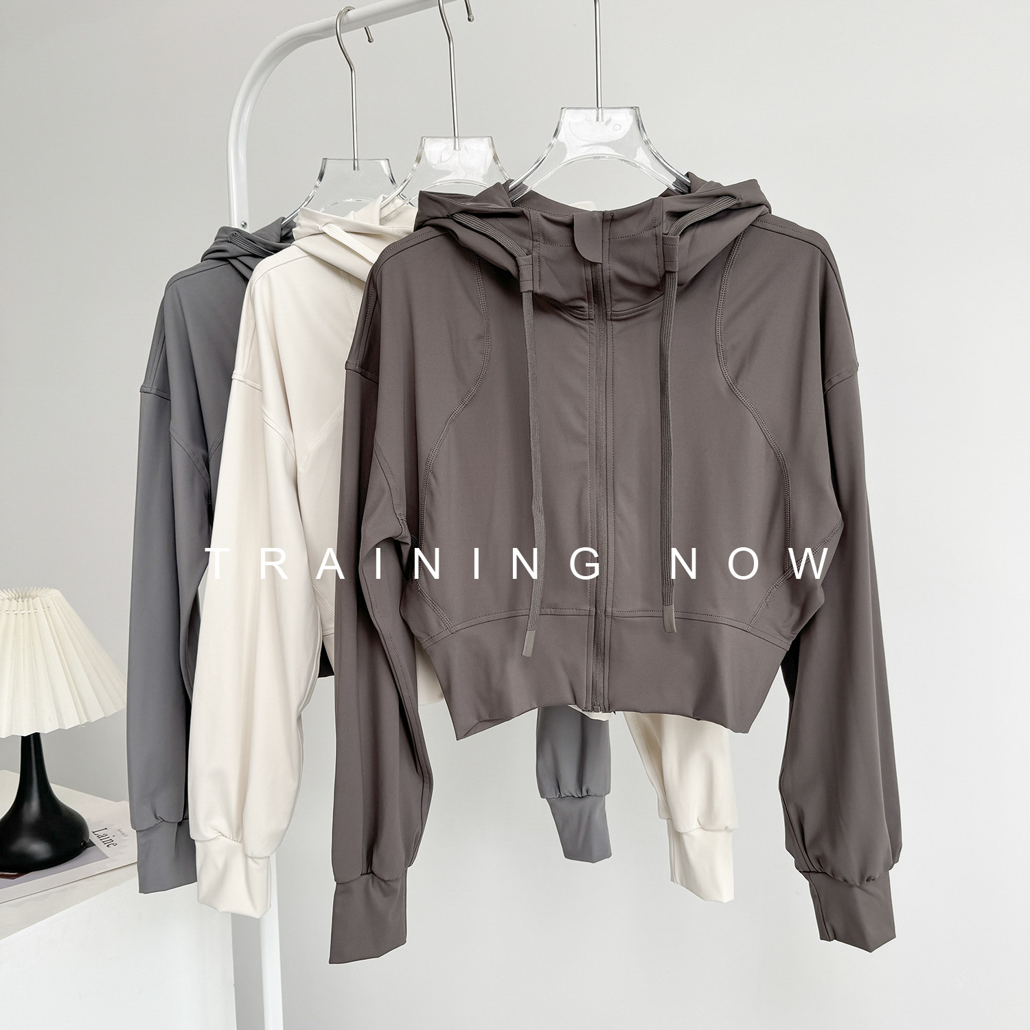 Hooded loose sports jacket, women's trendy casual top, running jacket, short yoga fitness wear, long sleeve autumn/winter style