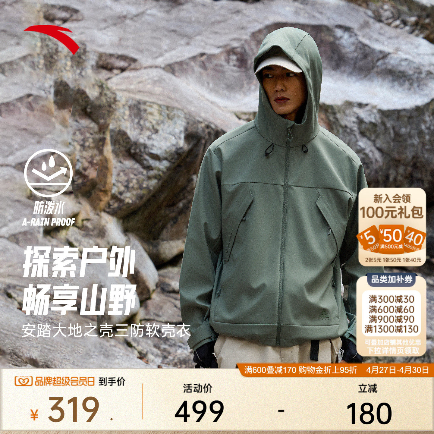 ANTA Earth Shell Softshell Jacket丨Outdoor anti-conformal woven sports jacket men's new loose jacket top