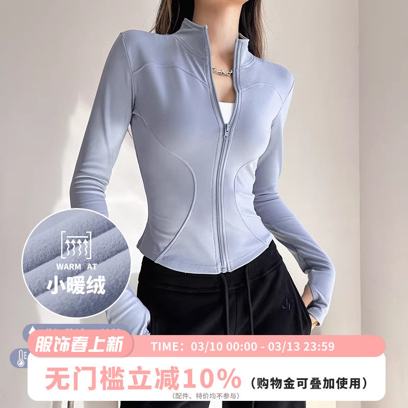 Fitness girl plush yoga suit jacket stand-up collar slim outdoor cycling running long sleeve Pilates sports top