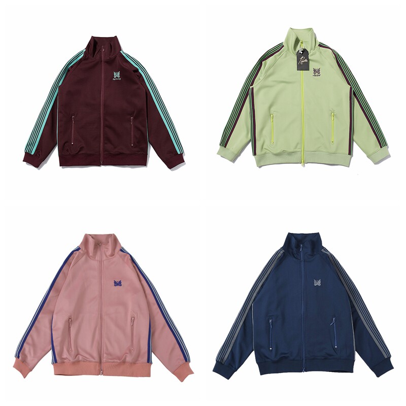 Needles butterfly embroidered zip jacket spring and autumn sports casual unisex striped webbing trend top