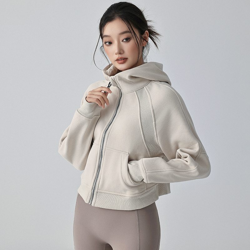 Weightlifting goblin fleece loose cropped sports jacket women's slimming hooded yoga suit running warm fitness suit