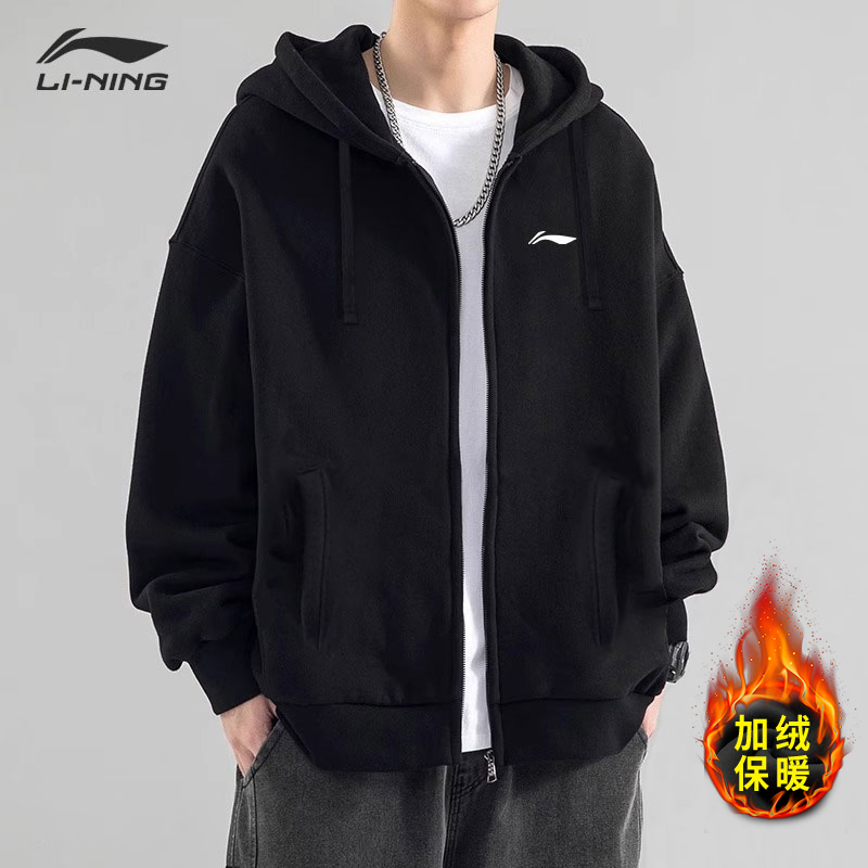 Li Ning jacket men's autumn and winter new fleece hooded sweatshirt men's zipper top teenager casual loose sportswear