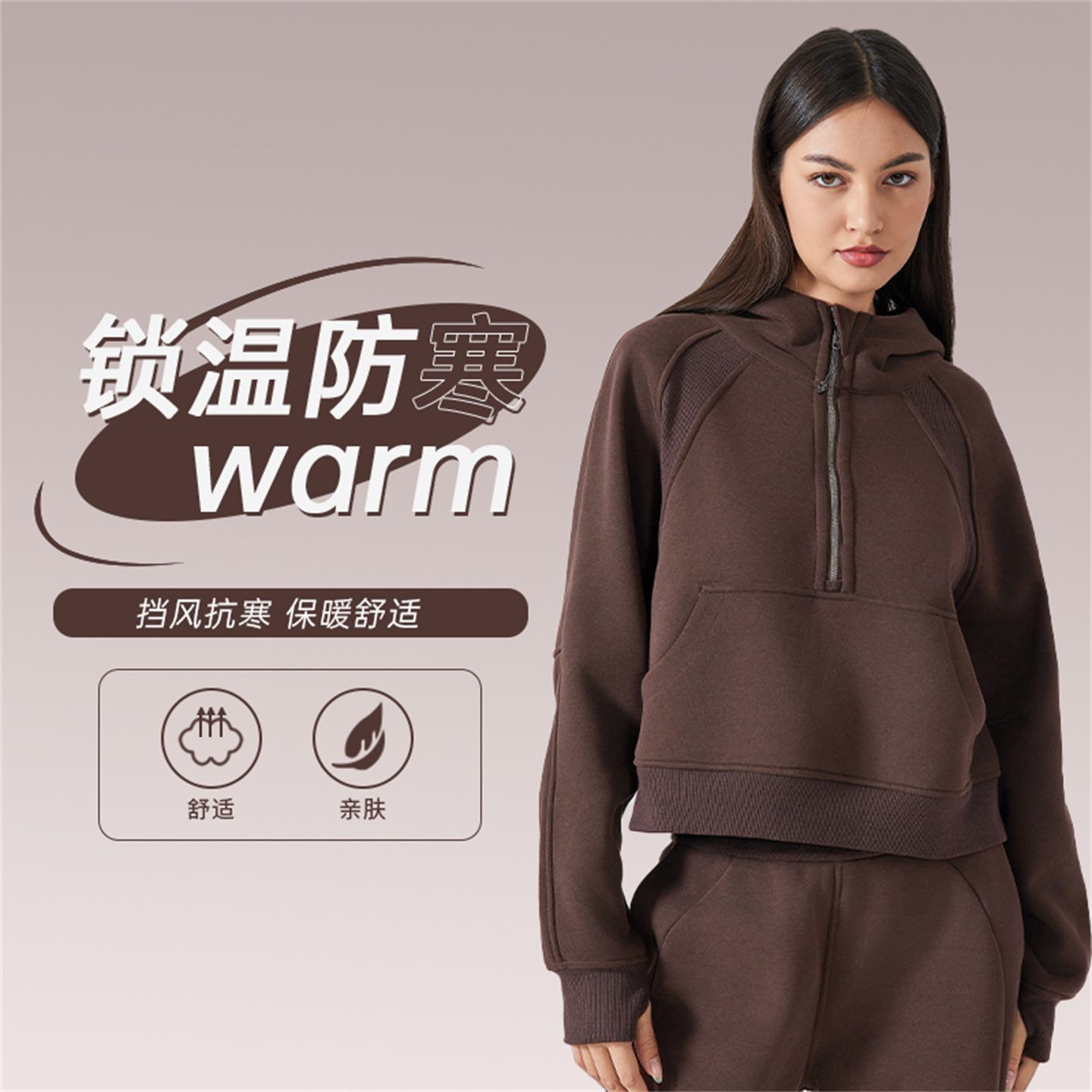 High-end fleece warm SCB hooded loose half-zip jacket women's outdoor sports wear hooded sweatshirt with long sleeves