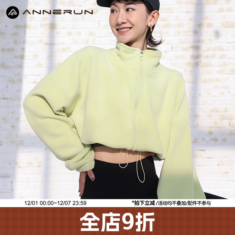 Annerun Lambfleece Sports Jacket with fleece and thickened stand-up collar fleece for sports fitness and casual polar fleece top