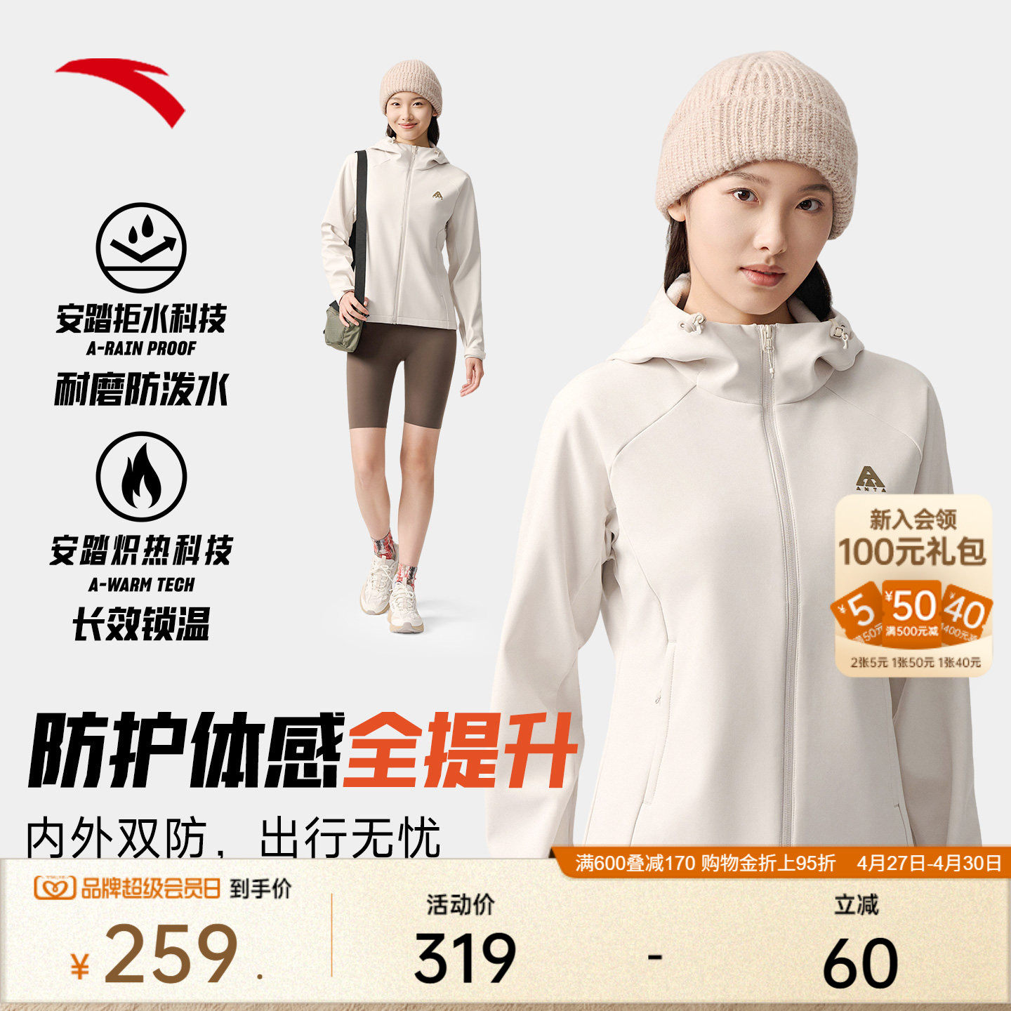ANTA water-repellent softshell clothing women's spring new windproof liner plush warm jacket trench coat sports top