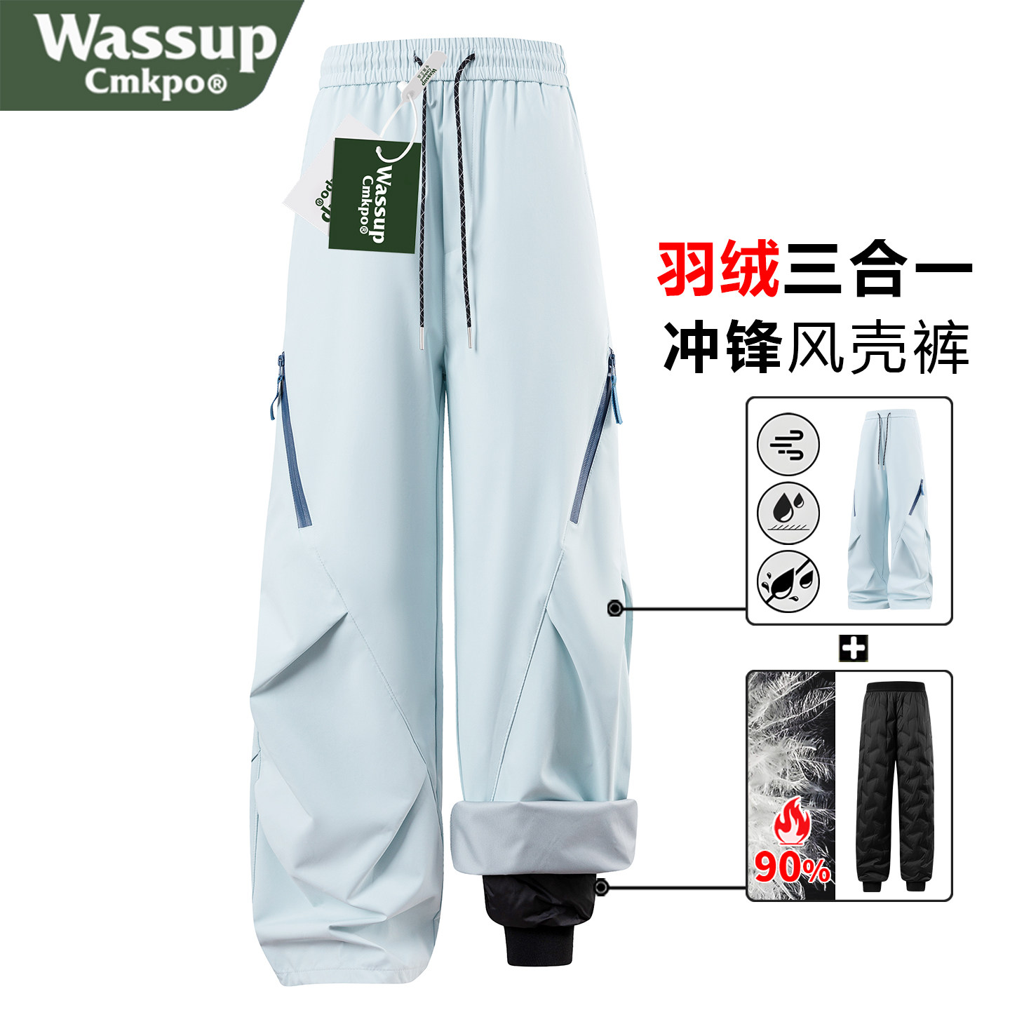 WASSUP CMKPO Winter Charging Pants Women's 2025 New 3-in-1 Windproof Ski Cargo Down Pants Men