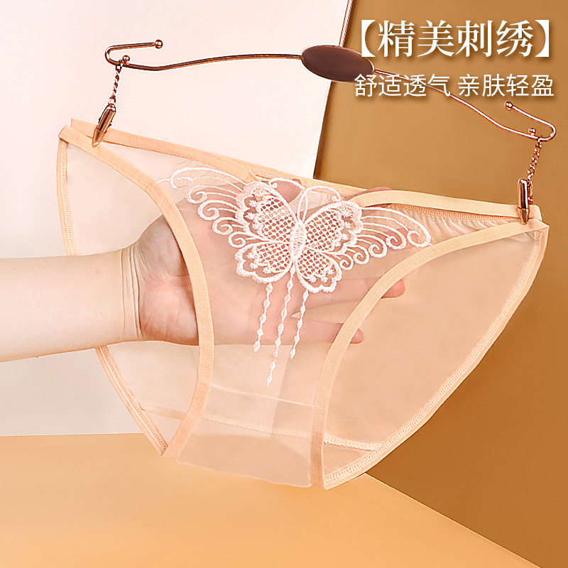 2/4 pairs of light luxury sexy women's underwear transparent lace fashion hollow mesh thin mid and low waist briefs for women