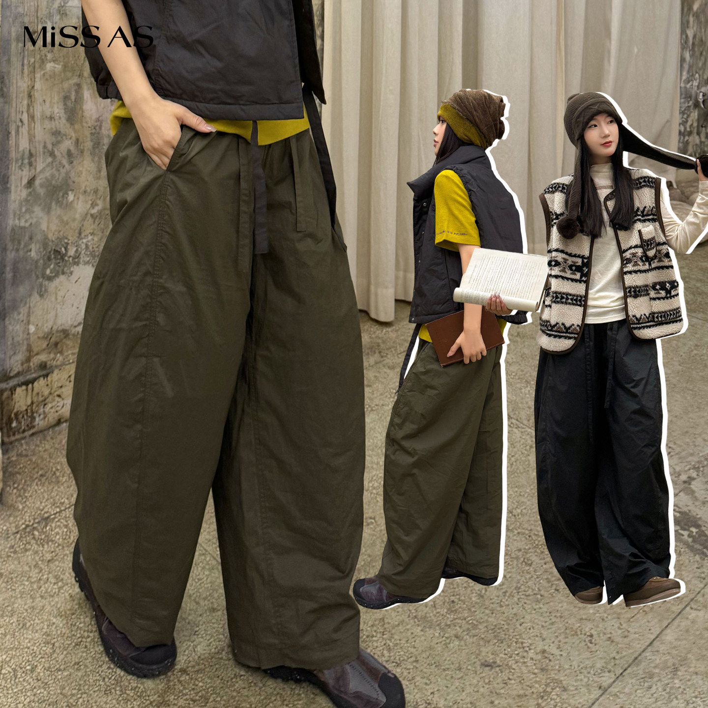 [Spot] SYUGNA simple casual solid color structure wide-leg lace-up trousers 25 new MISSAS buyer store