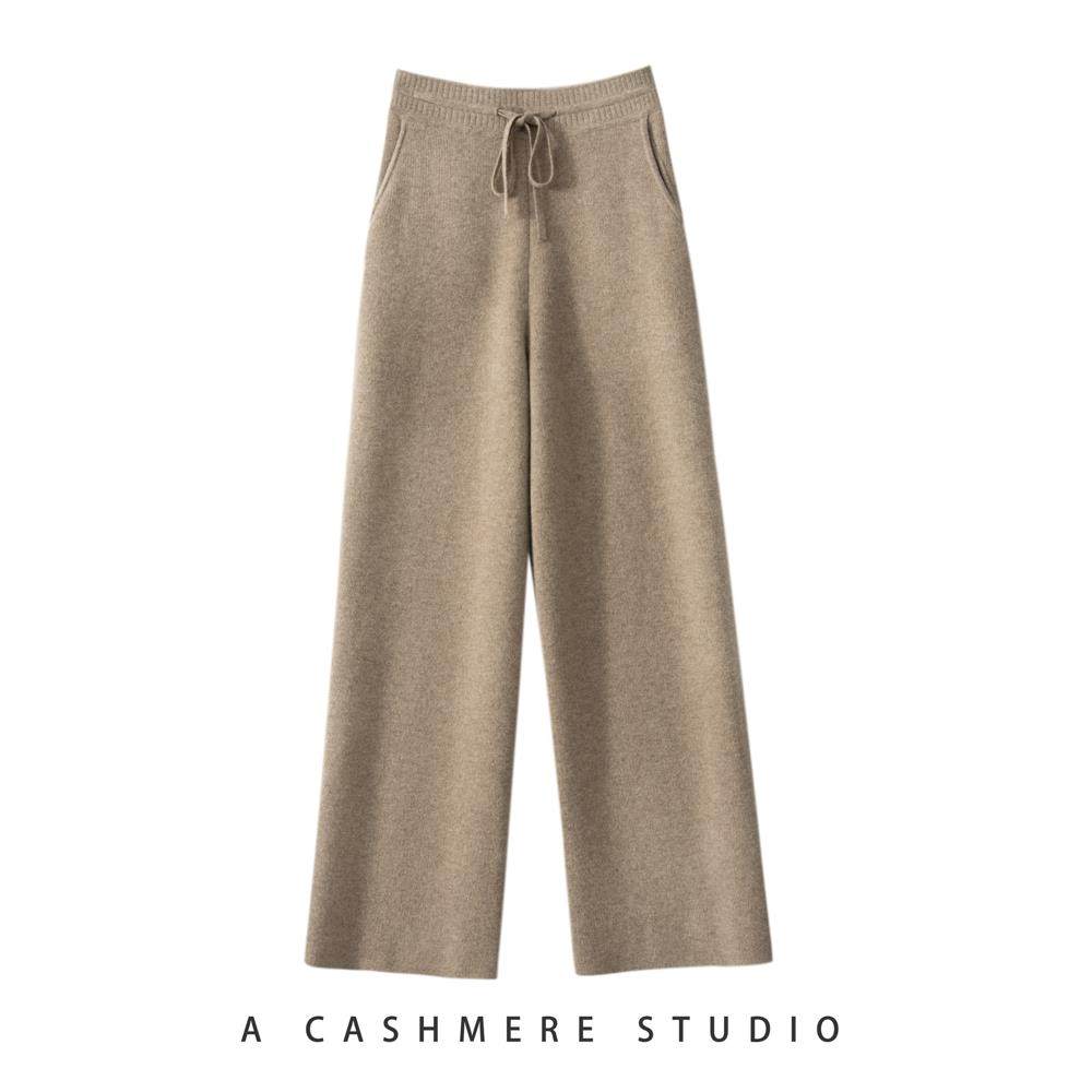 Autumn and winter high-waisted drape cashmere wide-leg pants for women to look slim casual and loose straight-leg wool knitted floor-length trousers to wear outside