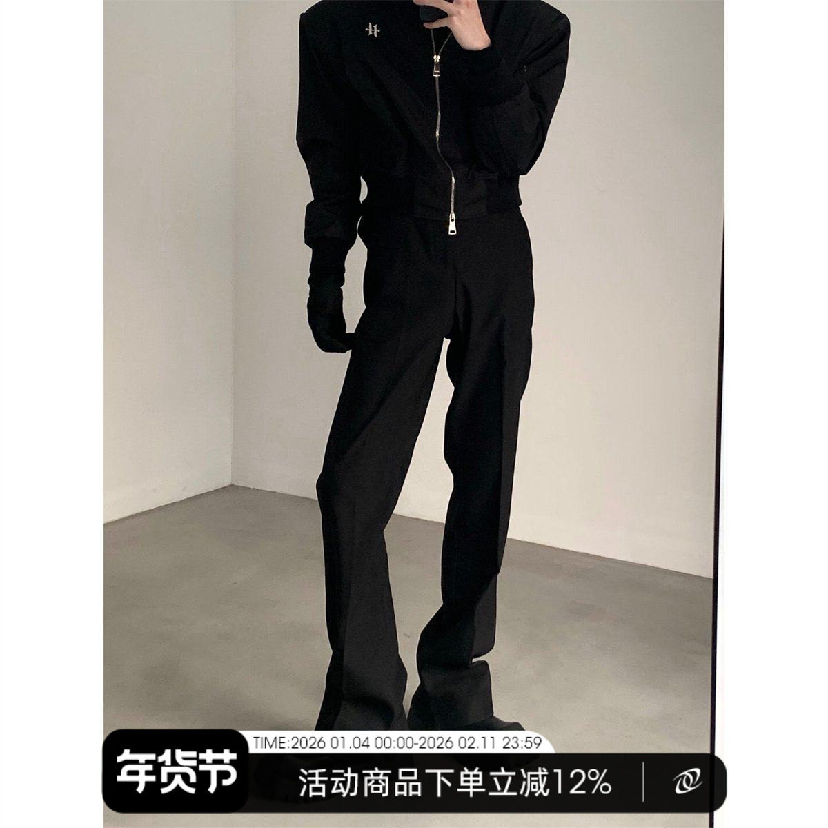 Autumn mountain style/niche high street vibe style slit micro-flared trousers, men's drape, high-end sense of accumulation floor-length pants
