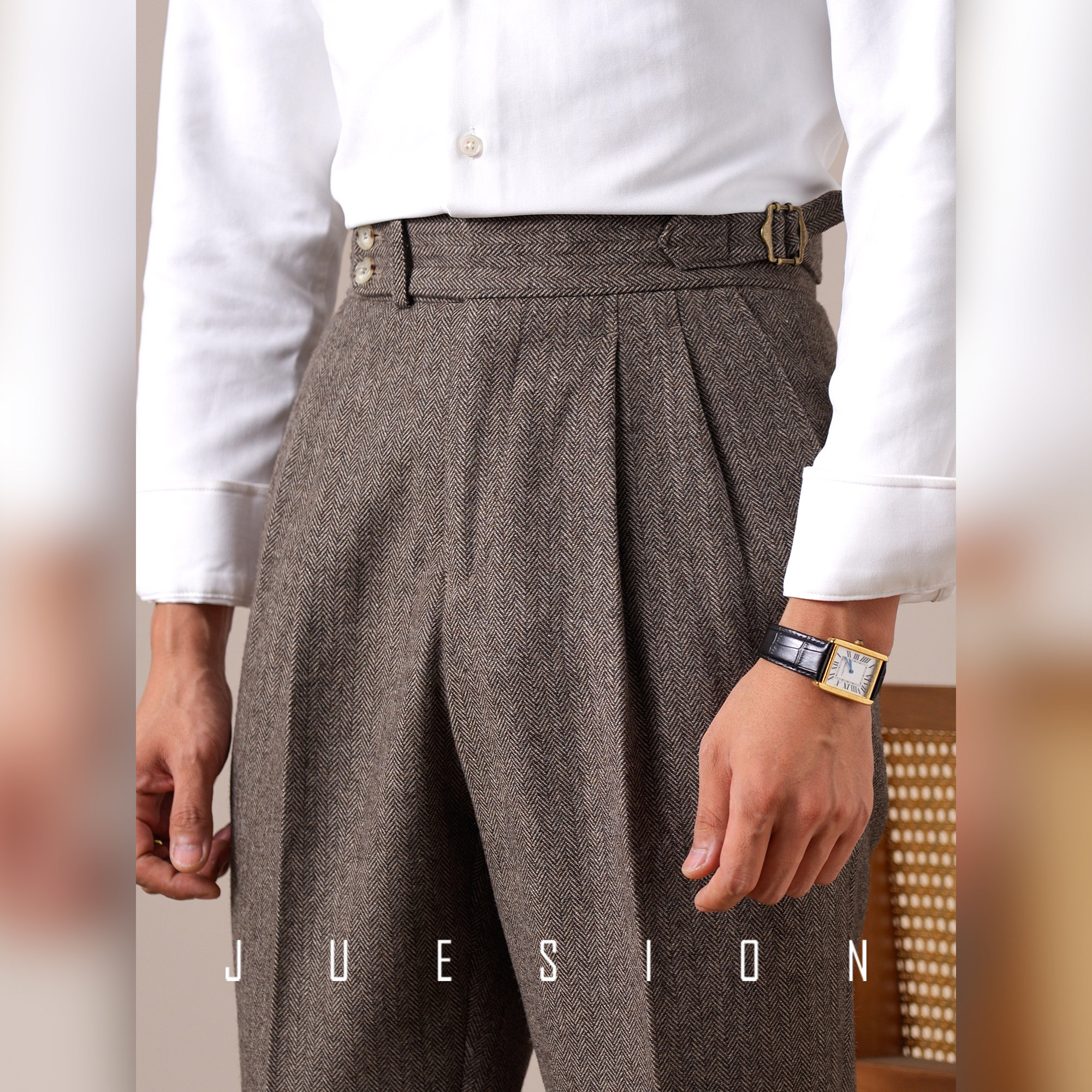 Romon double-pleated trousers for men with fleece and thickening in winter, middle-aged and elderly suit pants with fattening and enlarged high-waisted dad men's pants