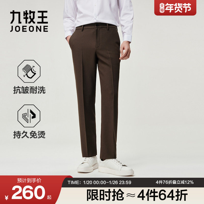 【Easy to Care】Jiu Muwang Men's 2025 Autumn and Winter New Straight Mid-Rise Stretch Tants that are not easy to wrinkle