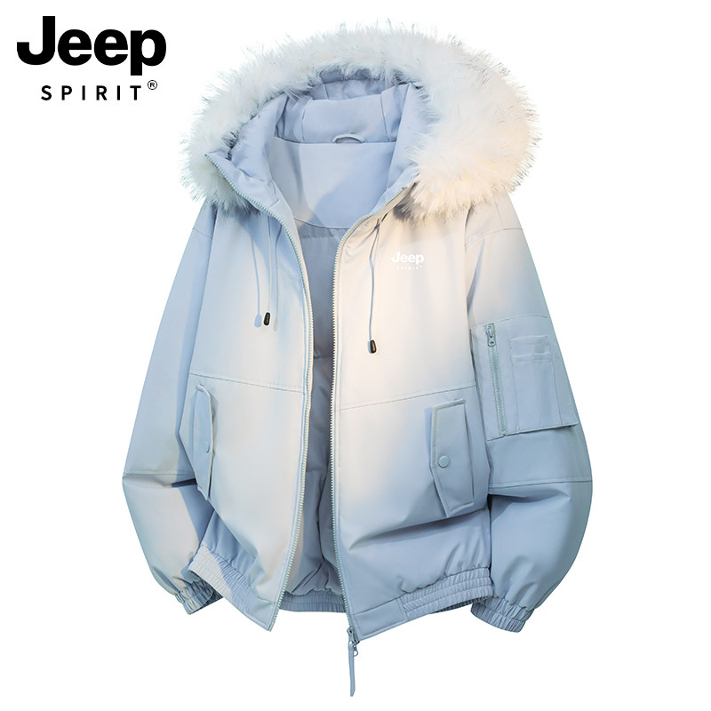 JEEP SPIRIT Blue Pie Jacket Women's 2025 New Winter Thickened Fur Collar Cargo Down Padded Jacket