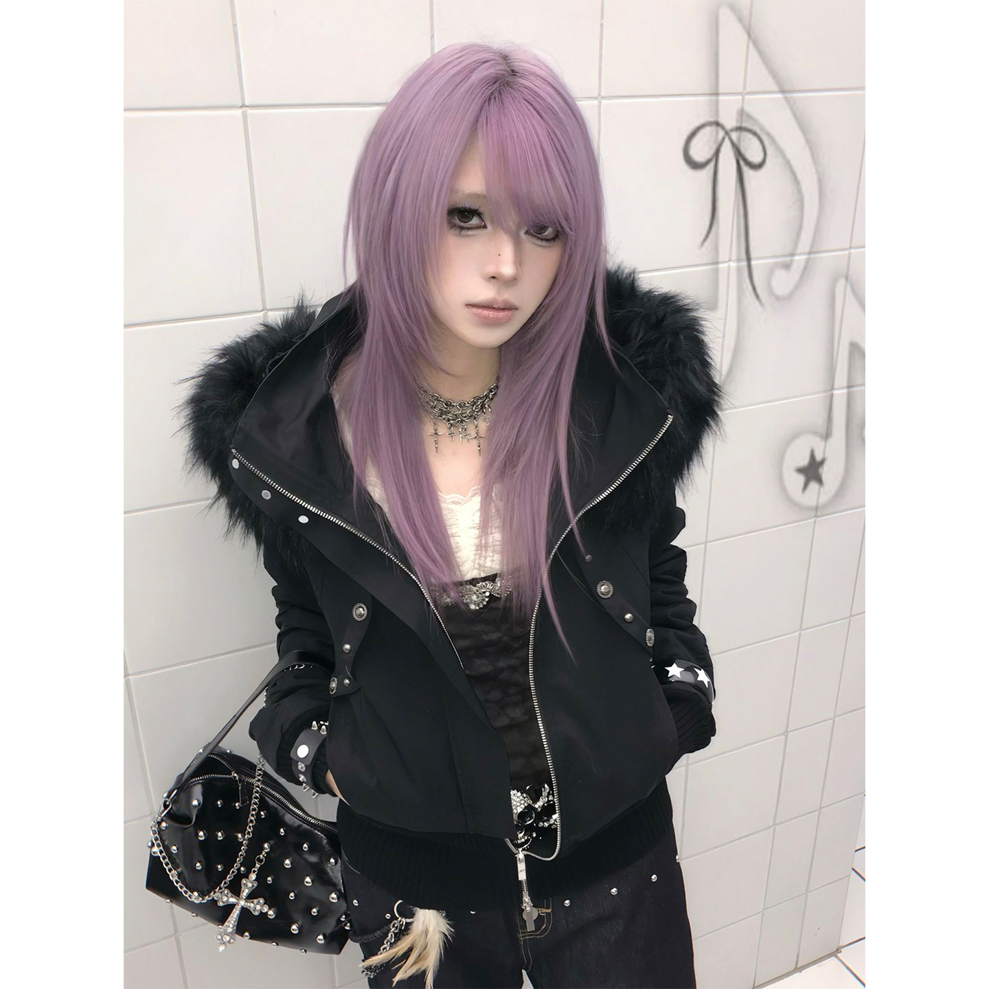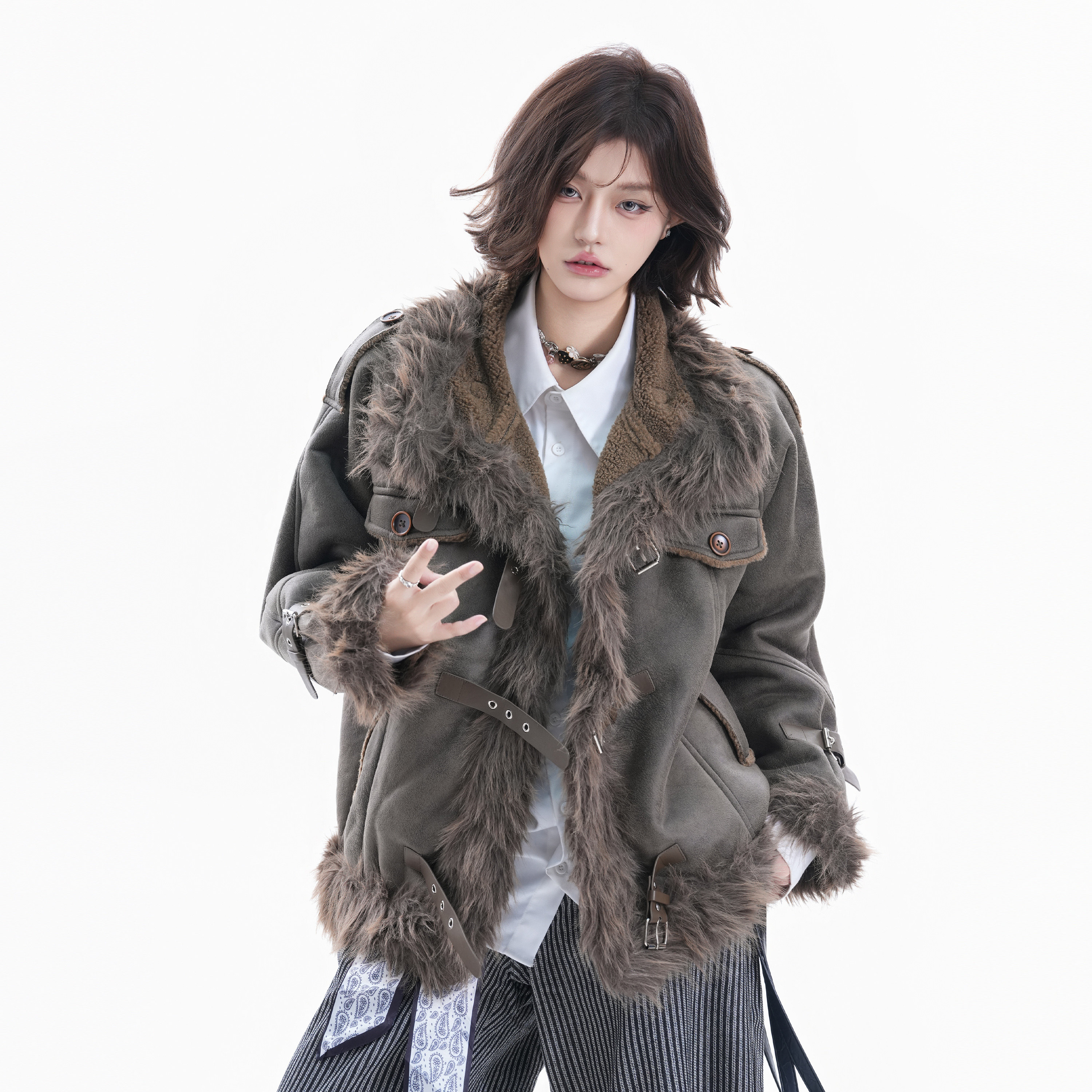 Subculture fur collar hooded cotton jacket women's winter new visual outfit slim waist short pie overcome