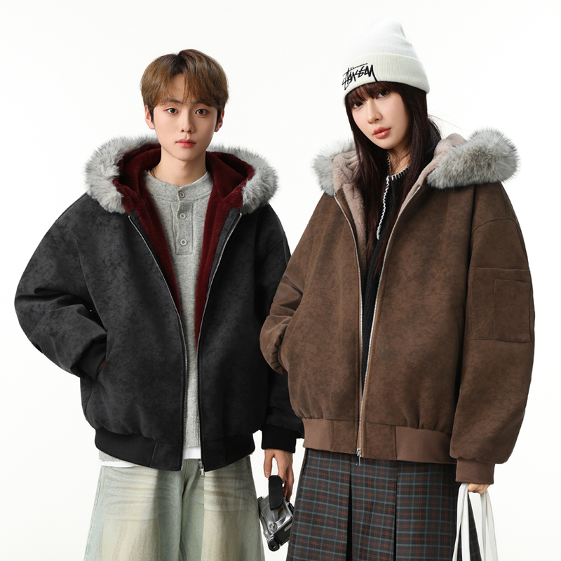 2025 new lambswool stand-up collar short thickened zipper jacket men's and women's winter casual cotton jacket