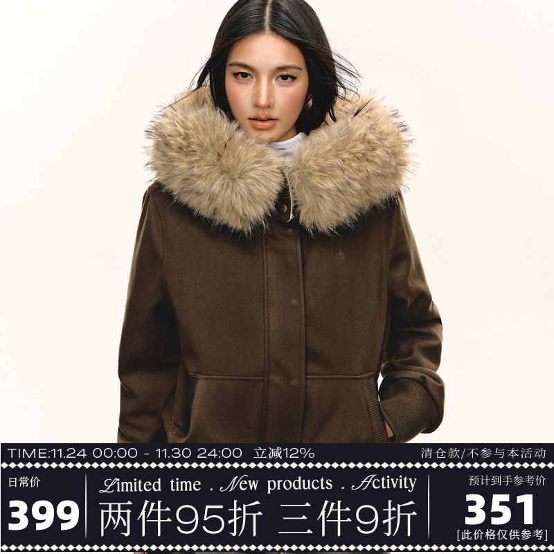Good morning Fan Fan Lao Qian thin wool cotton clothes stand-up collar detachable hat slimming cotton clothes women's winter warm bread jacket jacket