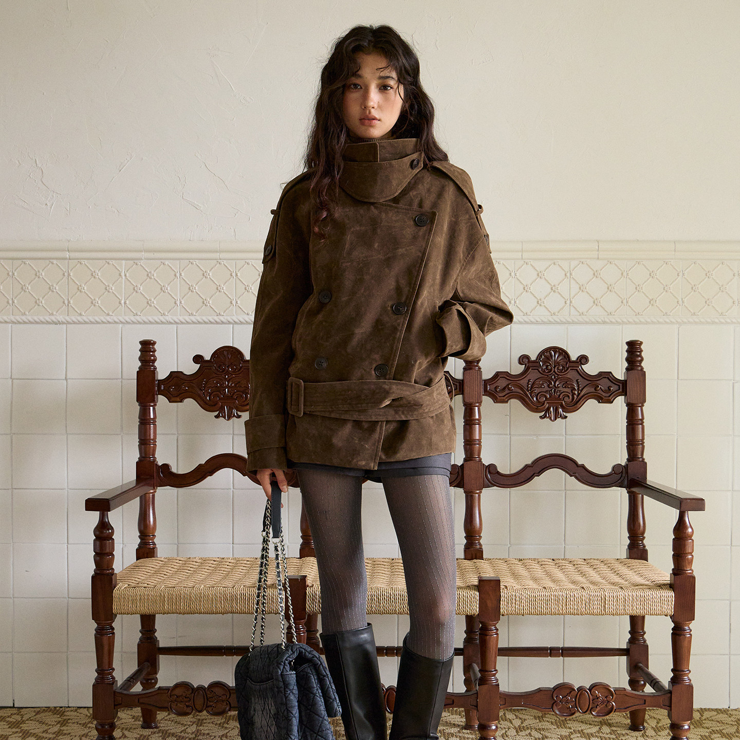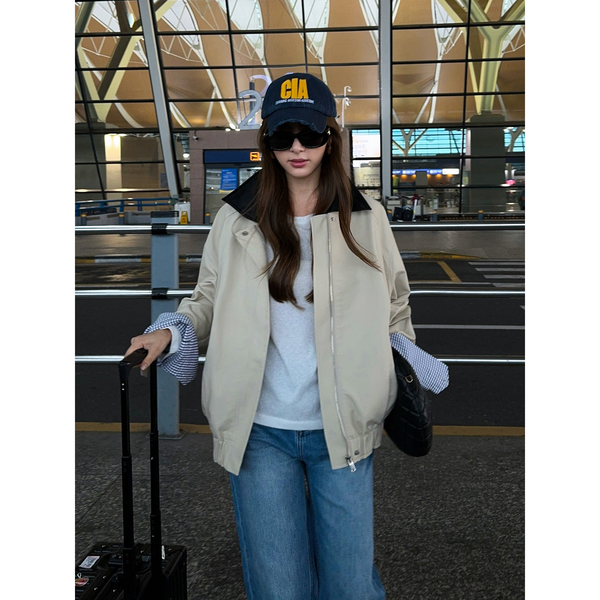 NEVA HU [70% off in stock] Barn-style contrast lapel cargo jacket women's padded vintage silhouette jacket