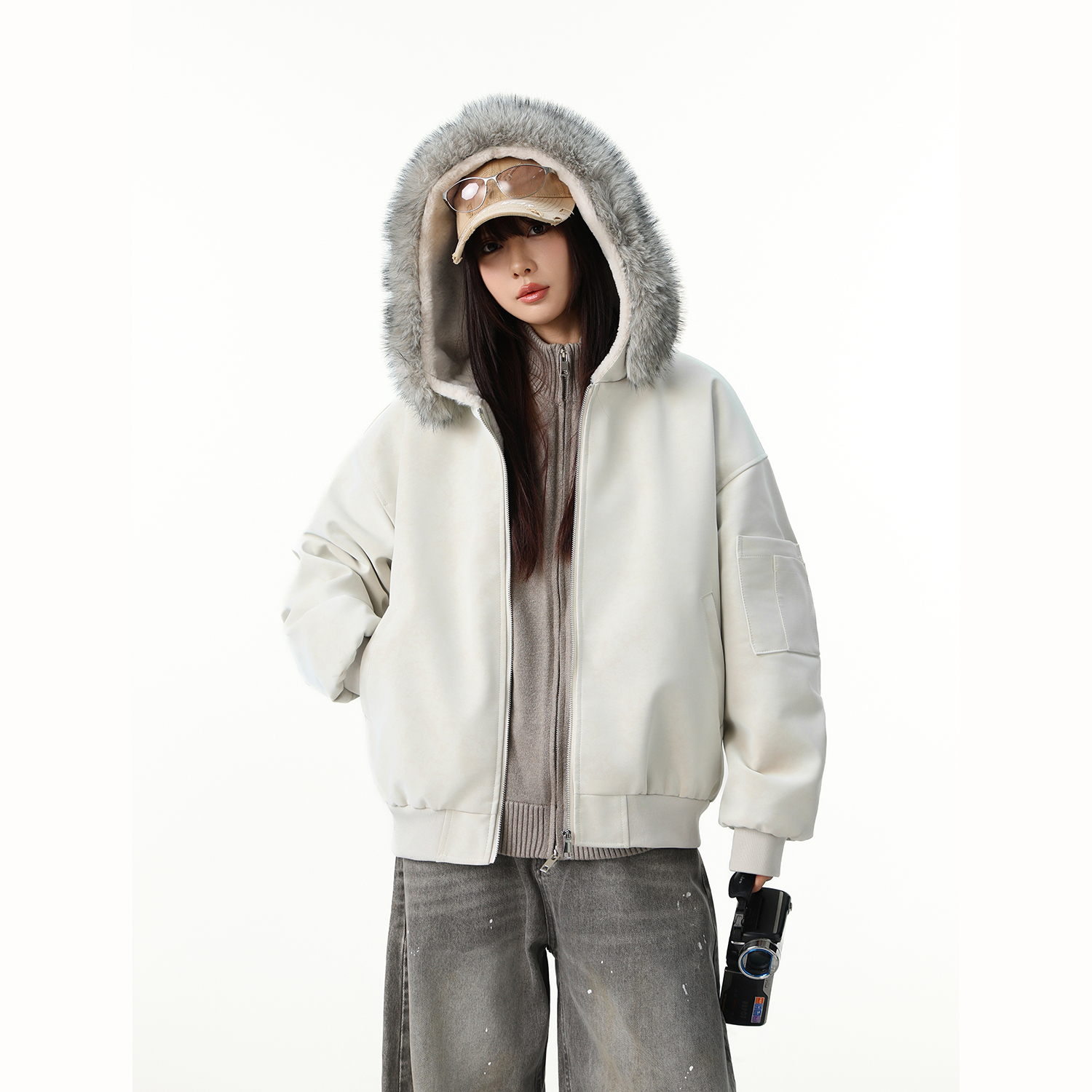 Lamb plush cotton jacket thickened jacket women's winter 2025 new American retro loose hooded cargo cotton clothes trend