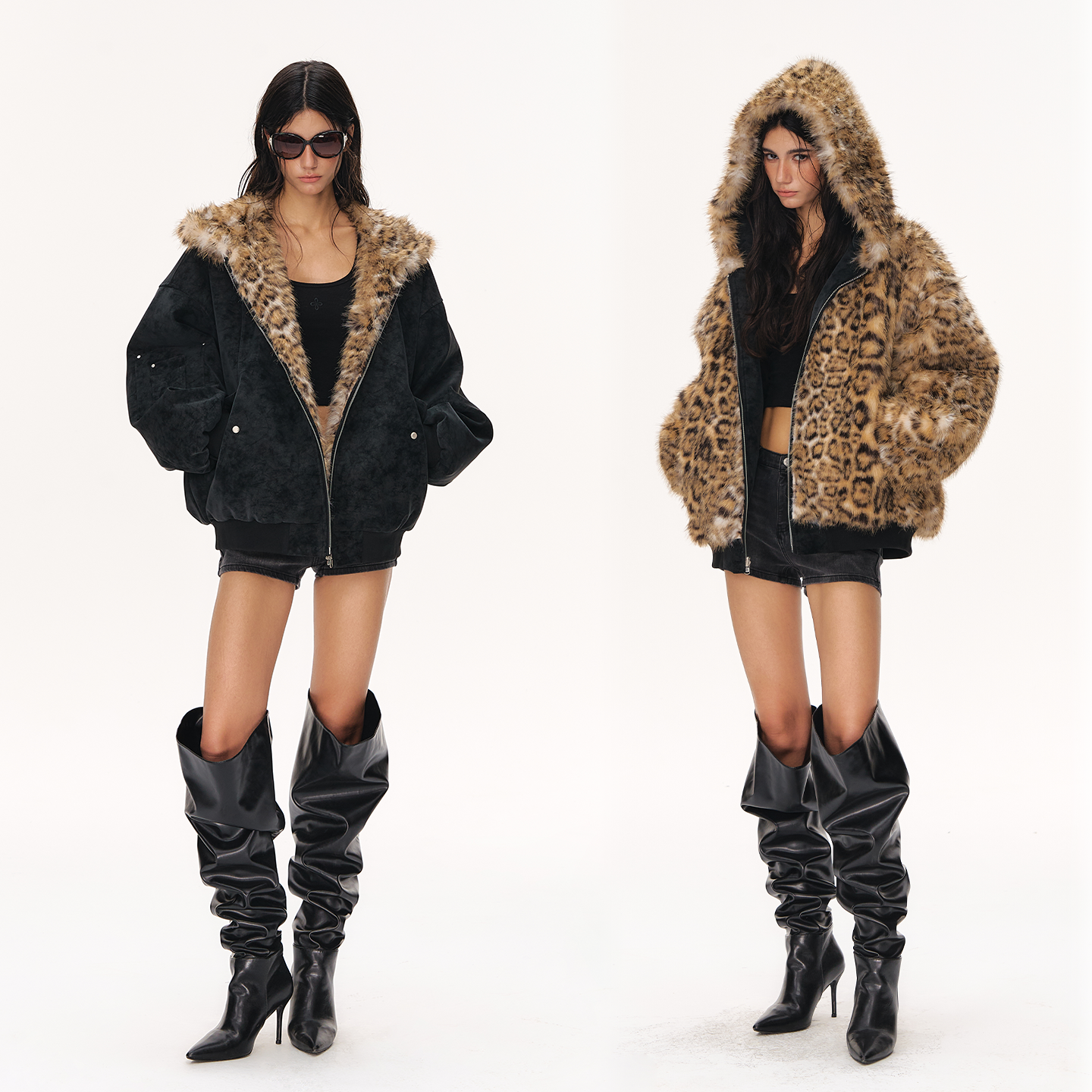 Subculture Leopard print hooded cotton suit women's winter new heavy bomber jacket thickened fur collar jacket visual department