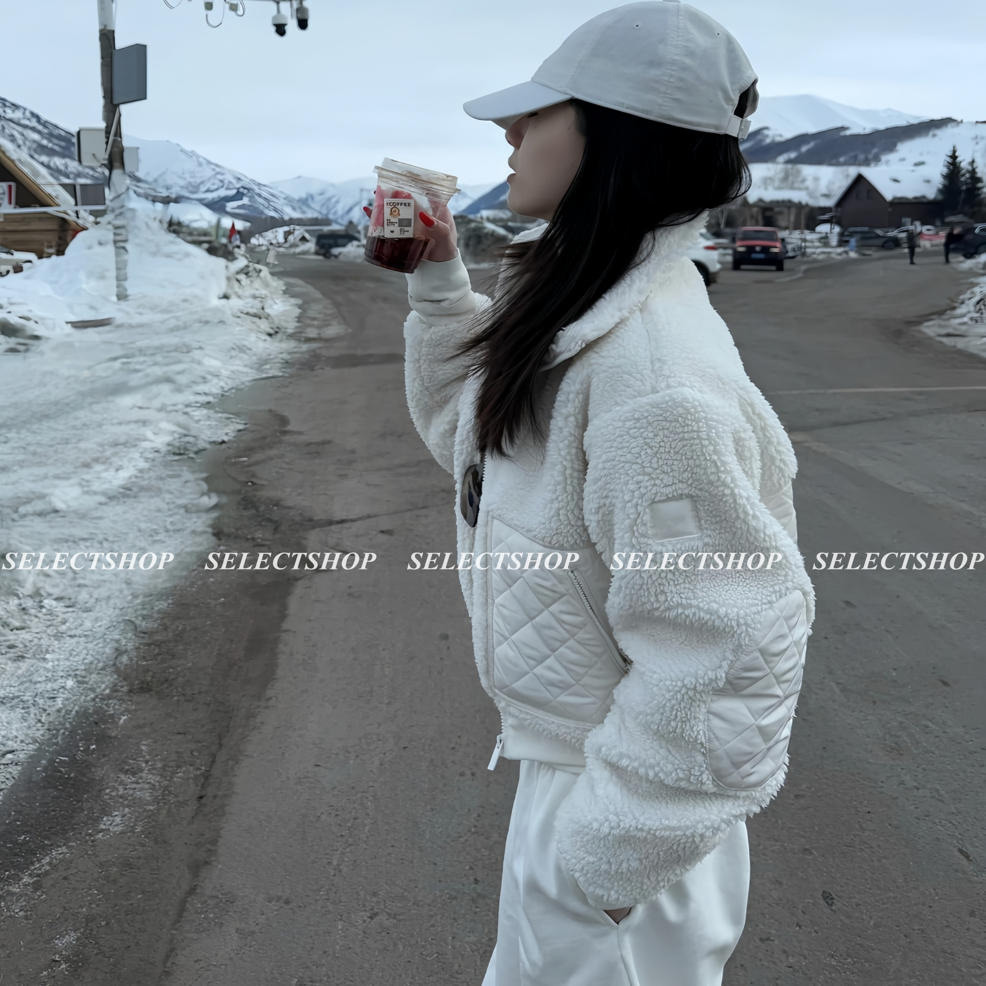 Autumn and winter new A family 25SS lamb wool bread jacket short lapel patchwork jacket cotton jacket