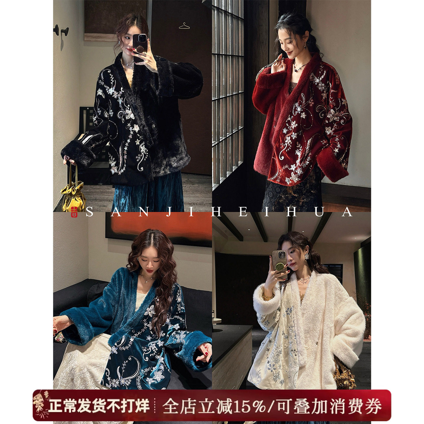Sanji Black Flower [Jin Banquet] New Chinese jacket beaded embroidered cotton suit women's winter thickened spliced top is very good-looking