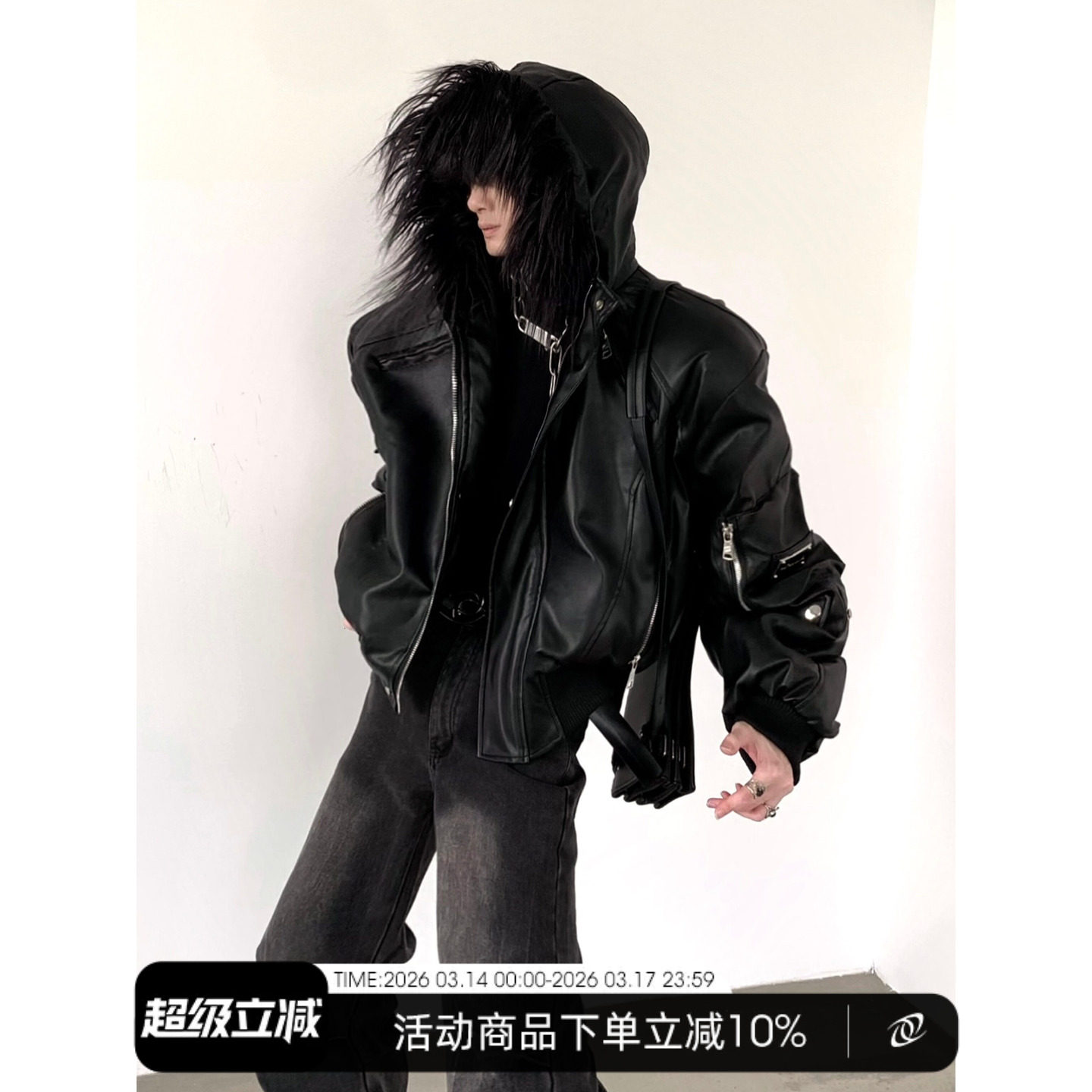 Autumn mountain style / punk seat mountain carving big fur collar jacket jacket men's high-end design sense winter hooded parka cotton suit