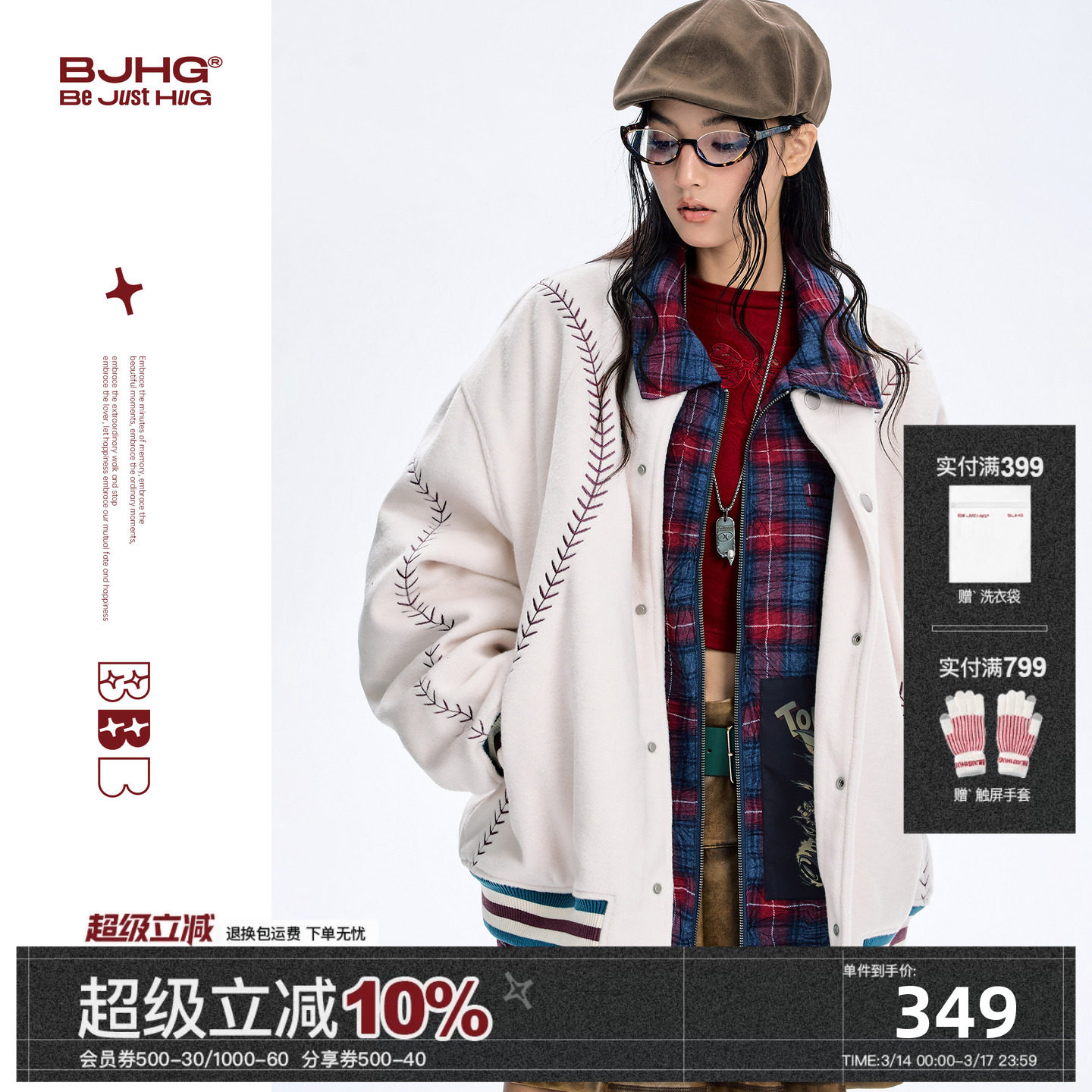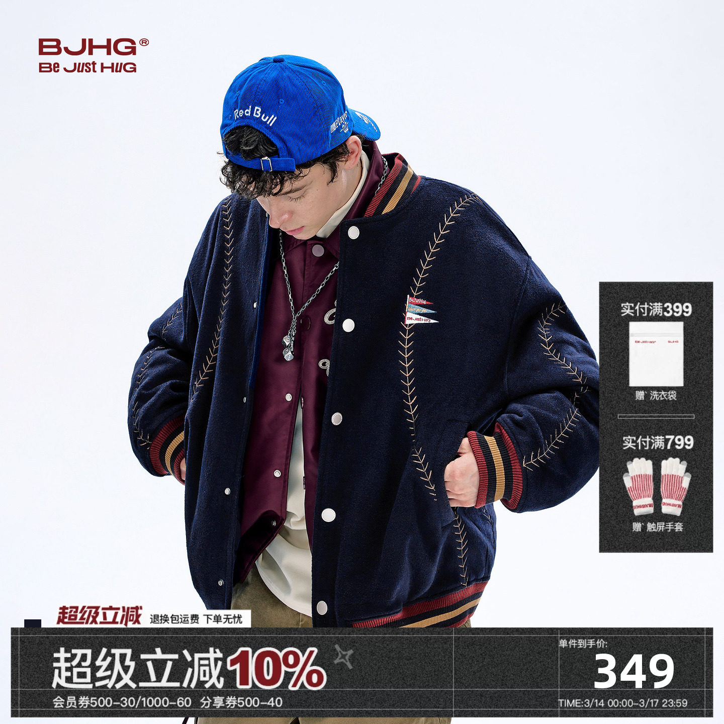BJHG reckless baseball uniform thickened jacket cotton suit men's winter American sports cotton jacket loose woolen padded jacket women