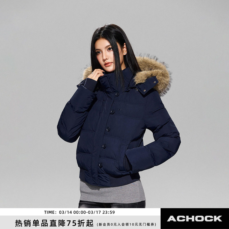 【Achock Official Store】Fiona fiona warm hooded cotton jacket with a slim fur collar short cotton jacket