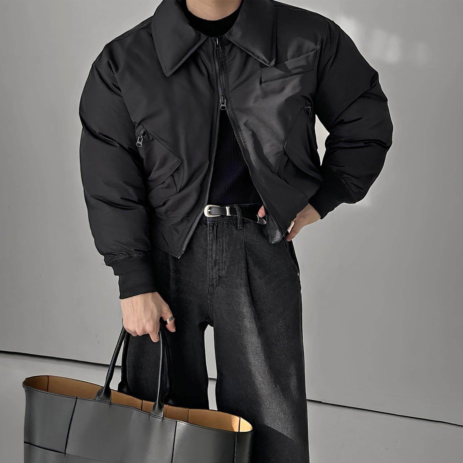 Black workwear cropped cotton jacket men's winter American high-end sense heavy industry lapel bomber jacket padded jacket