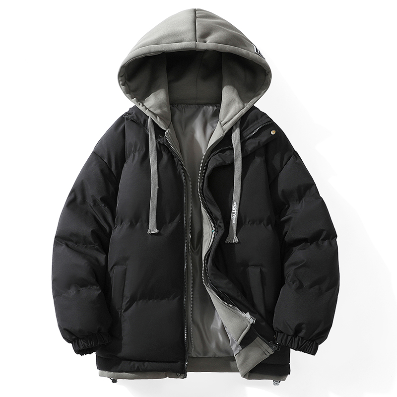 Down padded jacket men's winter new couple jacket loose fake two pieces of Hong Kong style trend thickened hooded bread jacket