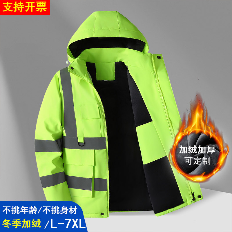 Chu Pai cotton clothes, men's jackets, windproof reflective strip jackets, cold-proof clothes, fleece thickened winter clothes, outdoor reflective overalls