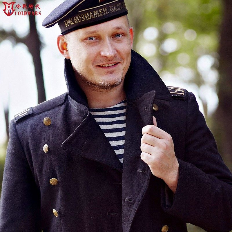 Cold War era recreation of WWII naval coats, Soviet sailors, cropped winter wool, woolen Russian vintage coats