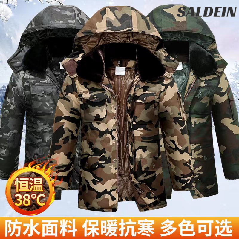 minus 40 degrees military winter coat with fleece thickened into the freezer, special cold protection clothing for men's and women's camouflage one-piece cotton pants