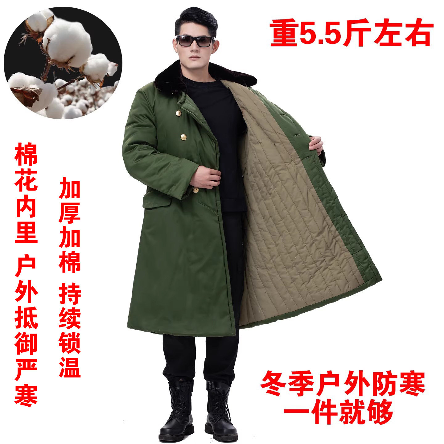 Military winter coats, men's military coats, green winter thickened fleece, long cold storage, cold-proof cotton clothes, labor protection, outdoor cotton coats