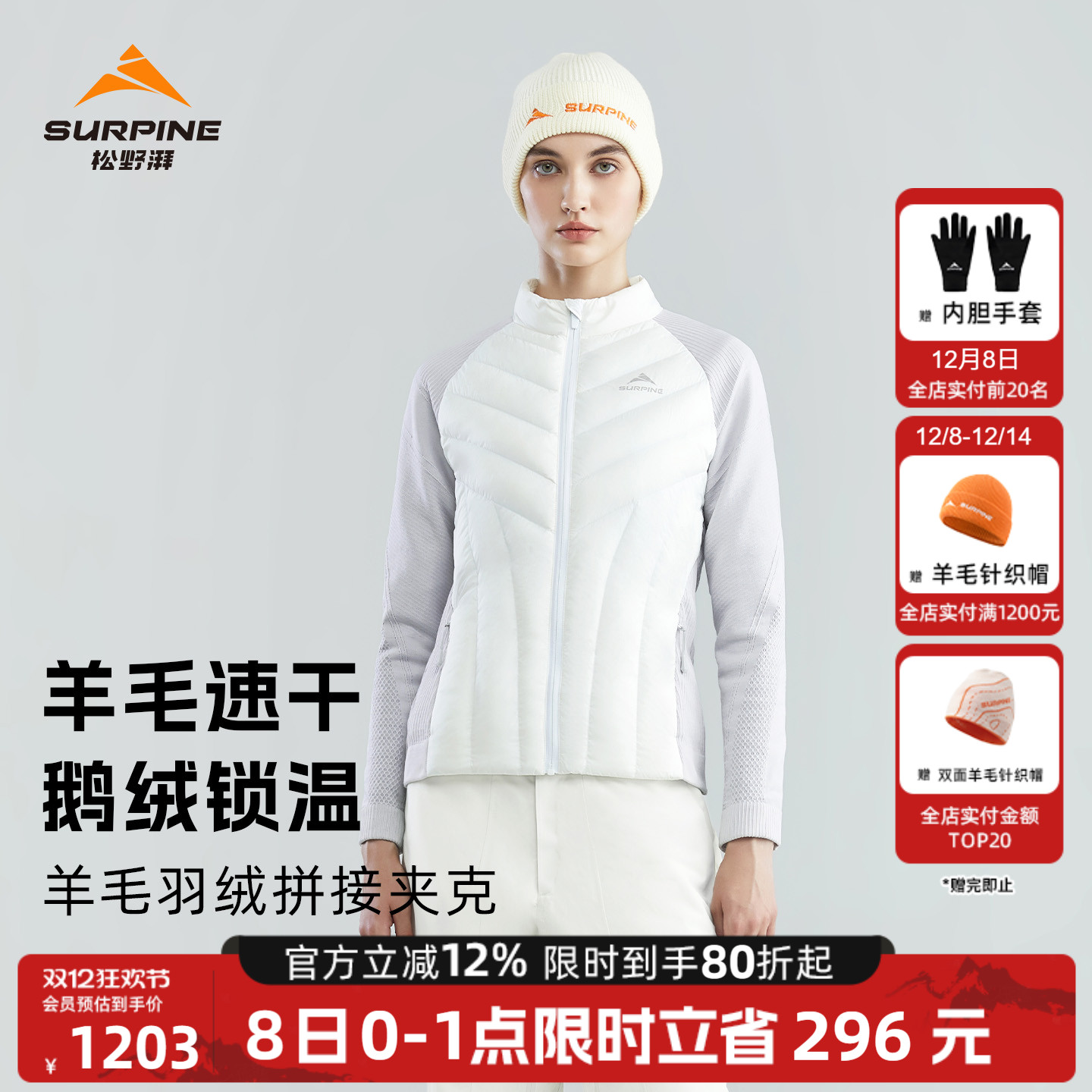 SURPINE Matsuno Pamerino wool knit down liner mid-layer women's warm ski jacket goose down