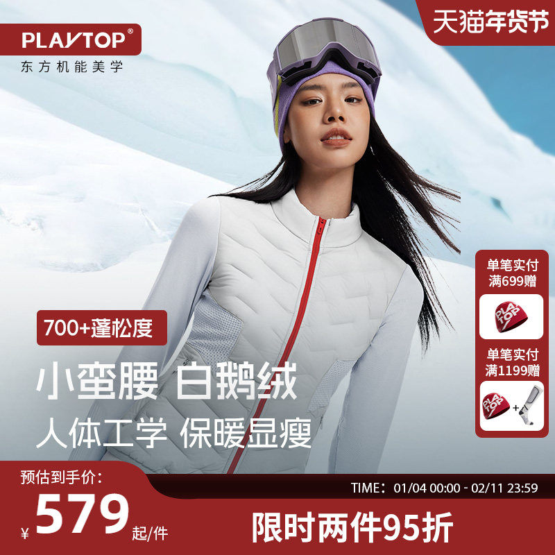 PlayTop Goose Down Warm Ski Golf Liner Female Slim Hiking Lightweight Rib Down Jacket Midlayer