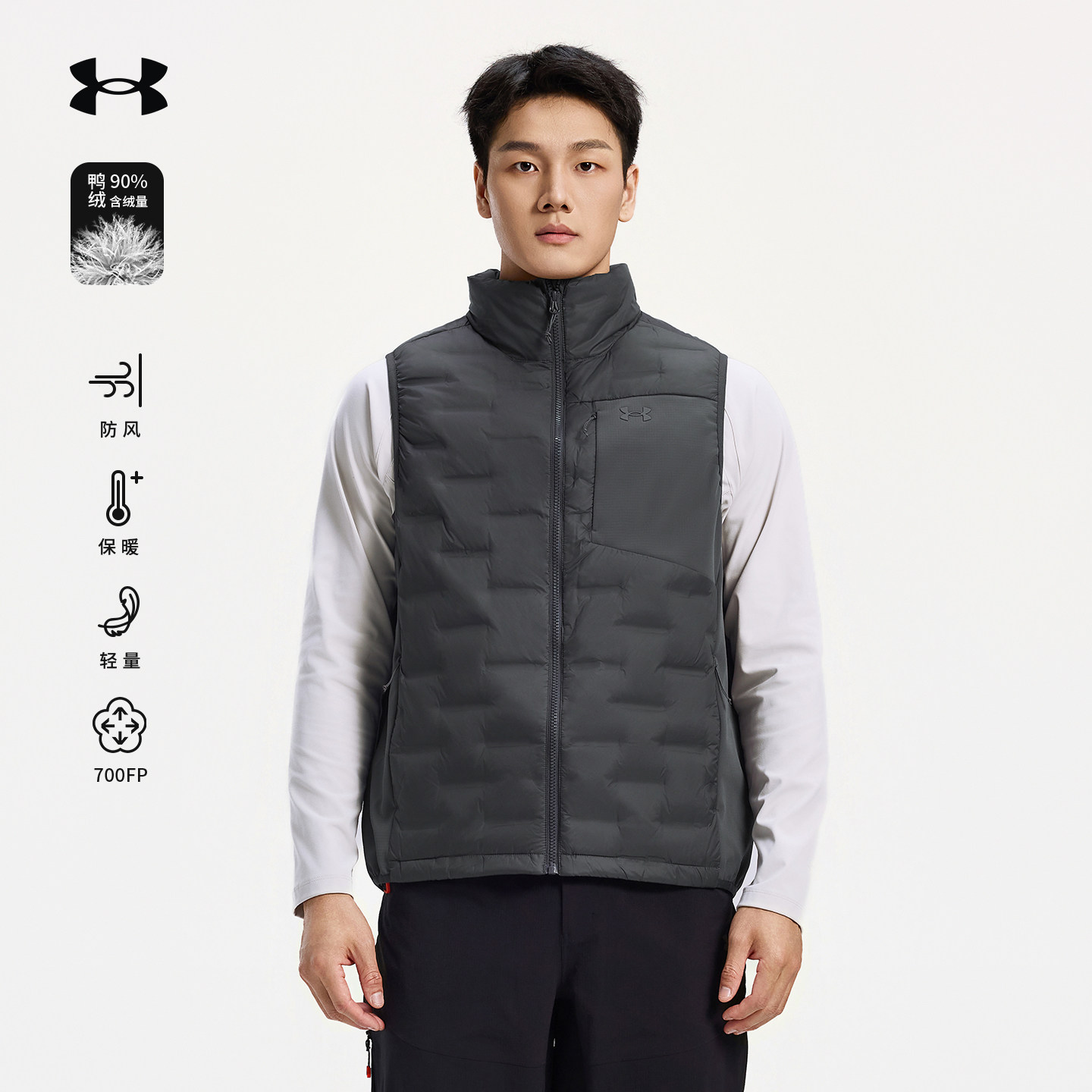 Under Armour UA official 700 fluffy down vest sports casual light and light 90 duck down windproof warm down jacket for men