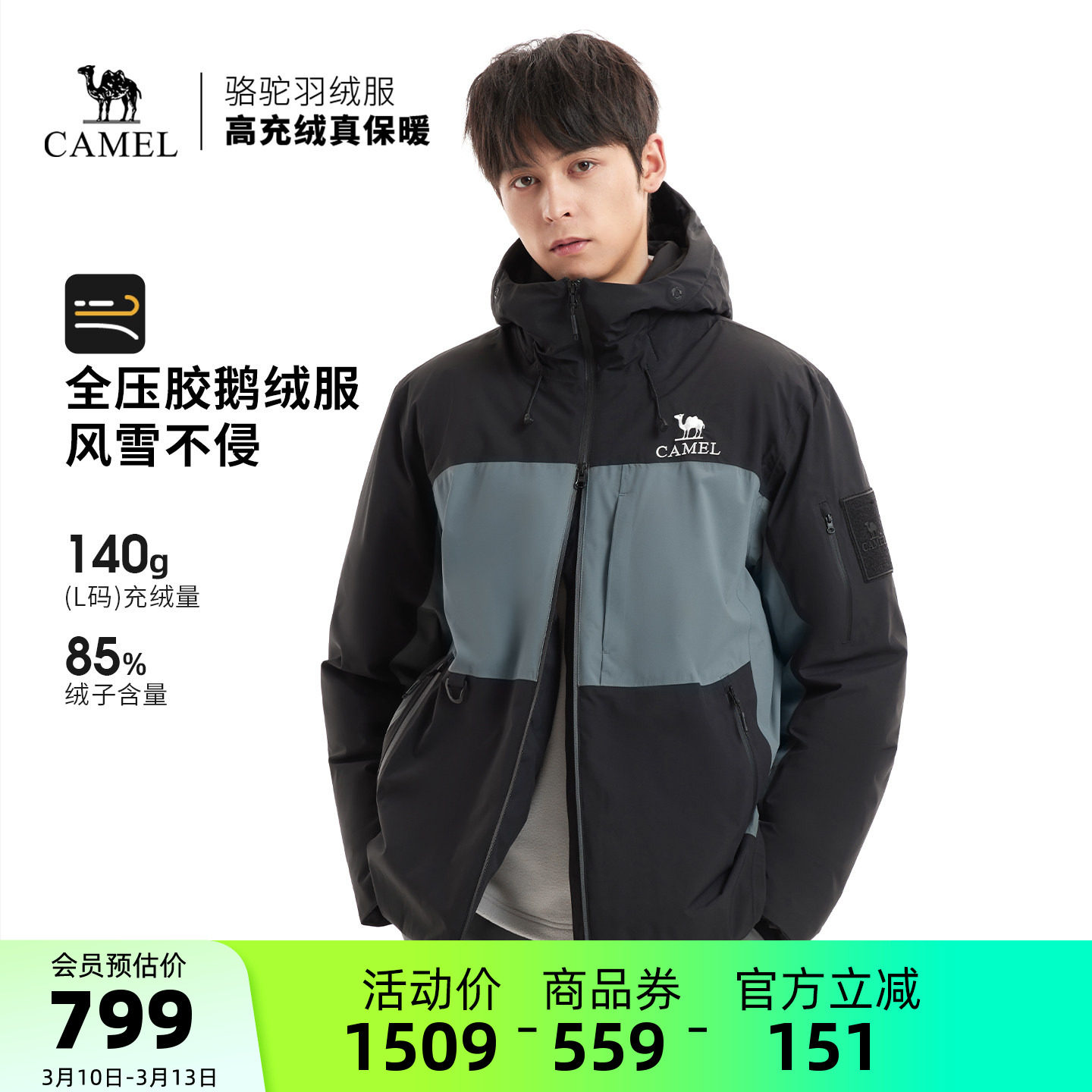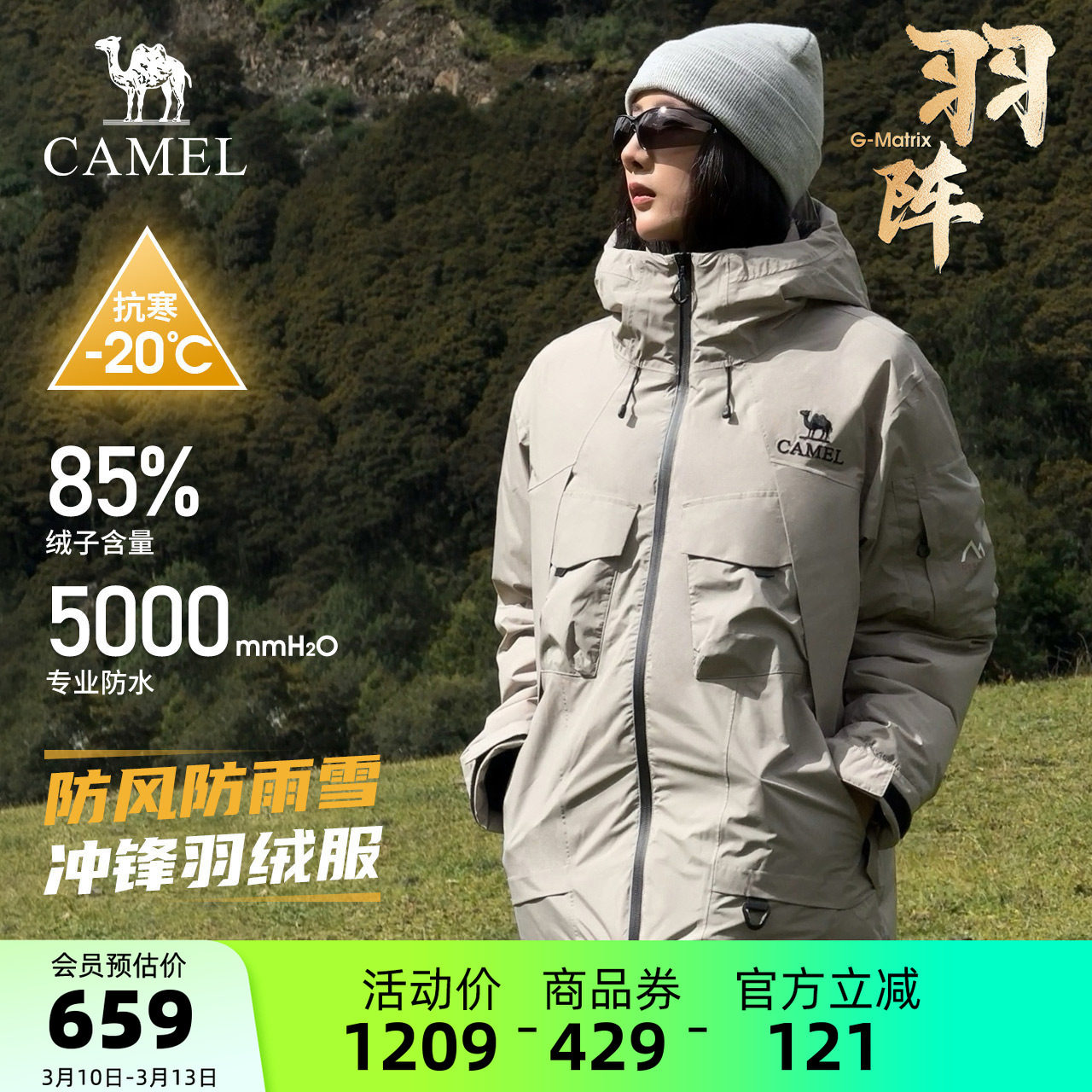 Camel outdoor winter women's men's windproof feather god PRO goose down bread down jacket